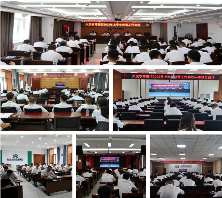 7月 21 日上午,大庆农商银行组织召开了全市 2023年上半年经营工作会议、落实银保监局安保工作专题会议和粮食收购客户评级授信工作启动大会。会议总结回顾了上半年工作的成绩与经验,重点分析了存在的困难和问题,安排部署了下半年工作任务,进一步统一思想、明确方向、提振精神,激励全行齐心协力、坚定不移地推进全年经营化险工作。