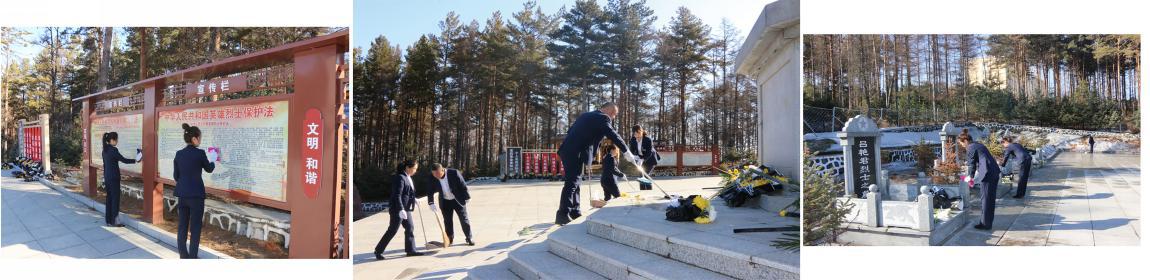 活动,党员干部们对烈士陵园地面进行清扫以及擦拭墓碑活动中全体党员列队肃立,在英雄纪念碑前,党委书记、董事长王文君,党委委员、监事长丛林、基层党支部和老党员代表敬献了花篮并向革命英烈鞠躬默哀,向先烈致以深切缅怀和崇高敬意。随后全体党员依次环绕烈士纪念碑一周,瞻仰纪念碑并在碑前敬献鲜花。