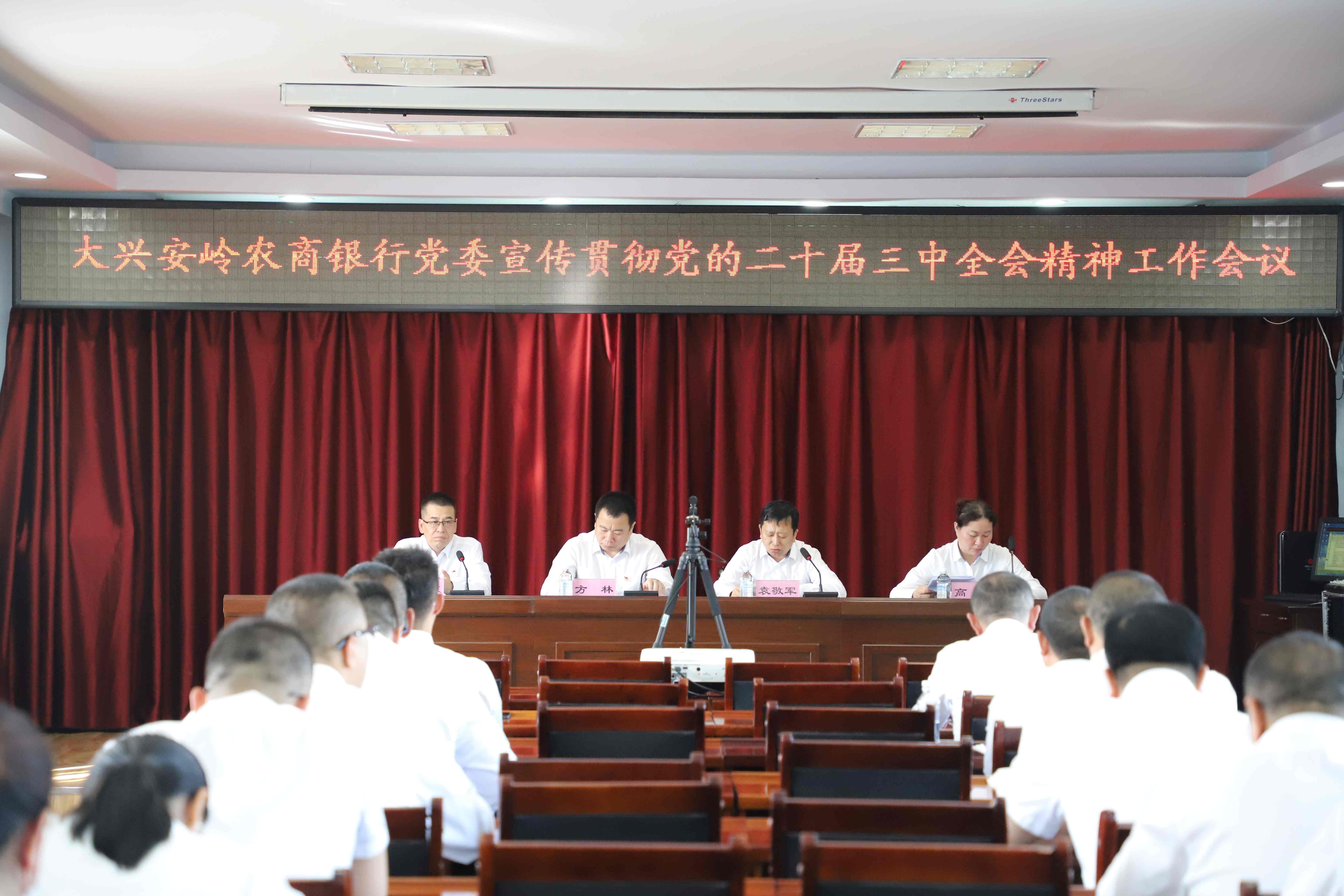 9月3日,大兴安岭农商银行党委召开会议,宣传贯彻党的二十届三中全会精神,研究部署学习宣传贯彻党的二十届三中全会精神工作实施方案,传达学习《中国共产党黑龙江省第十三届委员会第六次全体会议决议》,党委书记方林出席会议并发表讲话。